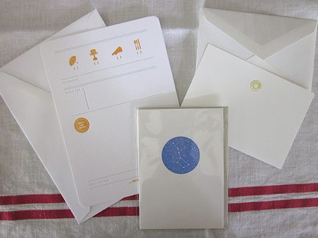 Happy Friday! It’s a crazy day today for me: I’m super excited to be heading to NYC tomorrow for a little SoHo shopping on Saturday and Stationery Show walking on Sunday. Which means I’m in the midst of packing, and organizing, and list making. Oh, do I love making lists. I think I’ve selected some great booths to check out at the show, and can’t wait to share my finds with you next week. Until then, the photo above is a Stationery Show apertif courtesy of the ladies of Sideshow Press. (I adore that big dipper card. It’s the perfect shade of blue.)