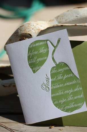 Perfect for the unofficial first day of fall: the saturated + elegant “Alice” fruit-themed collection of letterpress notecards from Hazel & Violet INK. See the full set of six at Etsy, and Happy September!