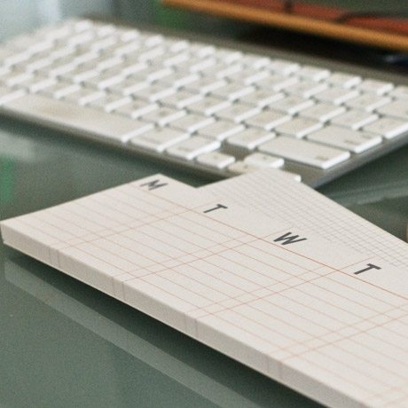 I think this is genius: a week-at-a-glance post it, simply designed to visually organize your week. (Graph paper version, too.) Available at Poketo.