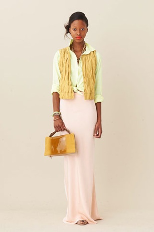 Love the color palette and the easy, elegant feel of this look from J.Crew’s Spring 2011 collection. (And the handbag just makes it, don’t you think?) See the rest of the show at Style.com.