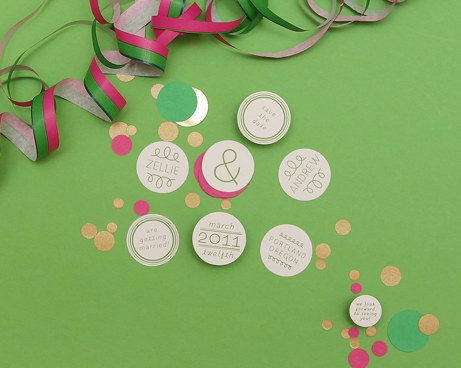 How great would it be to receive a save-the-date with confetti in the mail? So festive and fun: perfect for a New Year’s wedding. From Cheree Berry, who knows a thing or two about exuberant invitations.