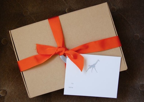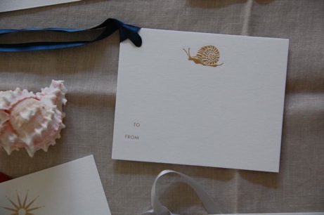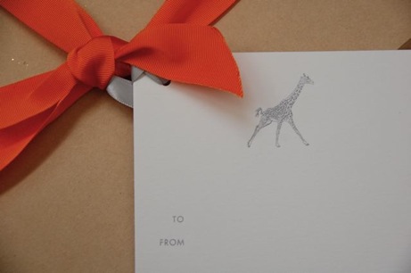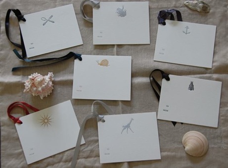 I love the idea of a très luxe gift tag attached to a simply wrapped present or hostess gift. These sized-to-be-noticed tags measure 3.5″ x 4.5″, and are crafted from heavyweight Italian paper. Letterpressed or engraved (varies according to design), from Bell’Invito; they’re perfect for adding a little zing.