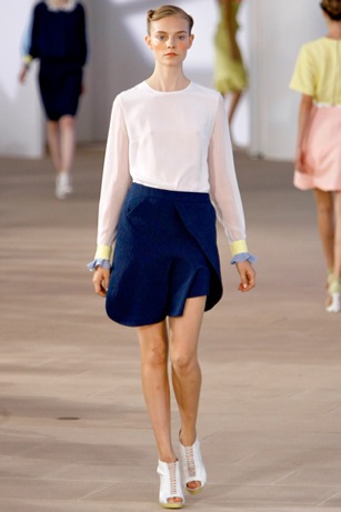 Am noticing this silhouette over and over in the spring collections, which is a very good thing. This skirt and top, from Preen, is especially appealing. See the full show at Style.com.