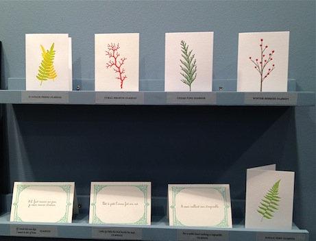 Ornament Letterpress was an oasis of serenity in the middle of the crazy that is Javits. Designer Miranda Hunt Borden’s work is heavily influenced by textiles, but I’d say she has an eye for botanicals, too: her fern notecards (available to purchase at the Ornament Letterpress Etsy shop) are magnificent.