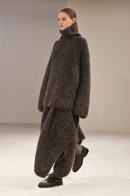 The Row’s fall collection opened with a slew of chunky knits that, worn as complete looks, could see you through a Polar Vortex. However, break up the pieces and you have a plethora of cozy luxe options for next fall, whatever the weather. (The turtleneck in look 2, paired with jeans could chicly carry me through many a February day in London.) See the complete presentation at Style.com.